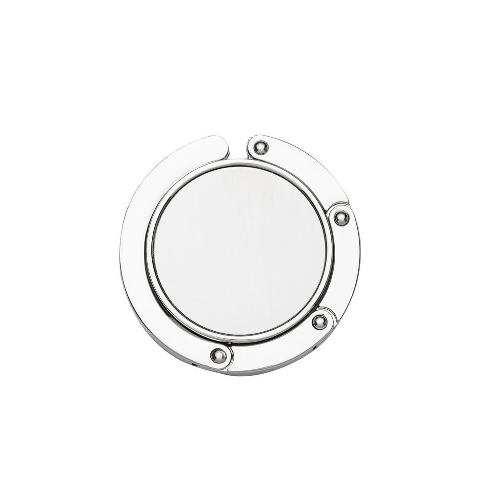 O porta bolsa dobrável personalizado em metal é um brinde corporativo elegante, funcional e muito útil para o dia a dia. Desenvolvido para oferecer praticidade e higiene, ele permite apoiar bolsas em mesas ou superfícies sem precisar colocá-las no chão.