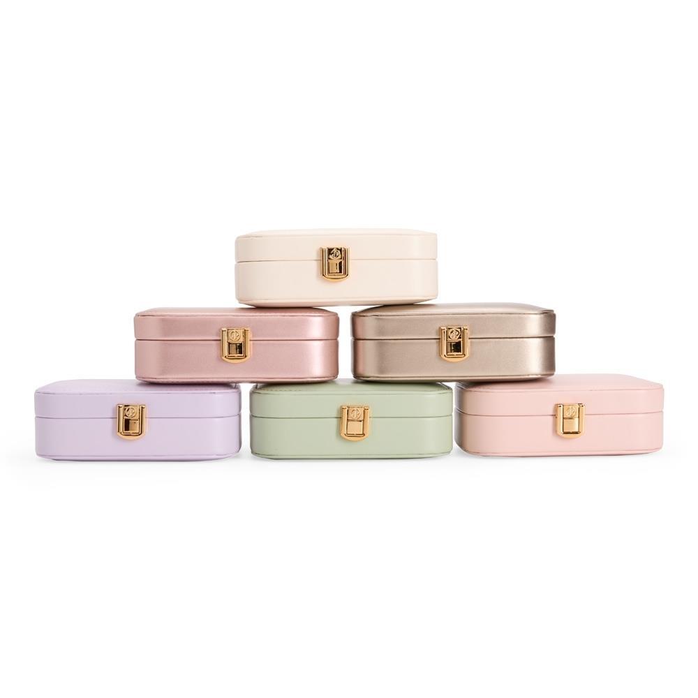 Fabricado em poliuretano de acabamento refinado, o estojo possui revestimento interno em tecido aveludado, garantindo proteção e cuidado para joias e acessórios delicados. Seu design compacto facilita o transporte em bolsas, malas ou mochilas, sendo perfeito para organização doméstica ou para viagens.