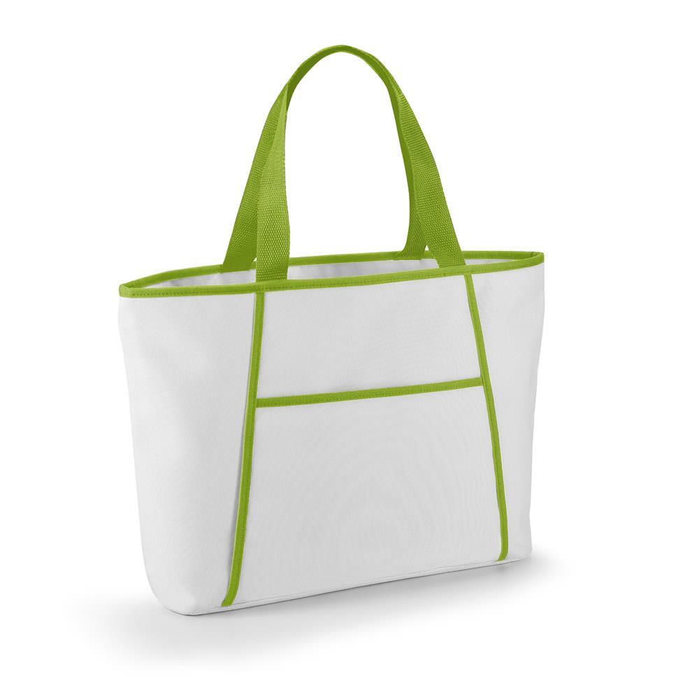 As alças em webbing de 55 cm proporcionam conforto no transporte, inclusive no ombro. Com capacidade de até 9 litros e dimensões 470 x 305 x 120 mm, é perfeita para praia, passeios, viagens, piqueniques, eventos ao ar livre e campanhas promocionais de verão.