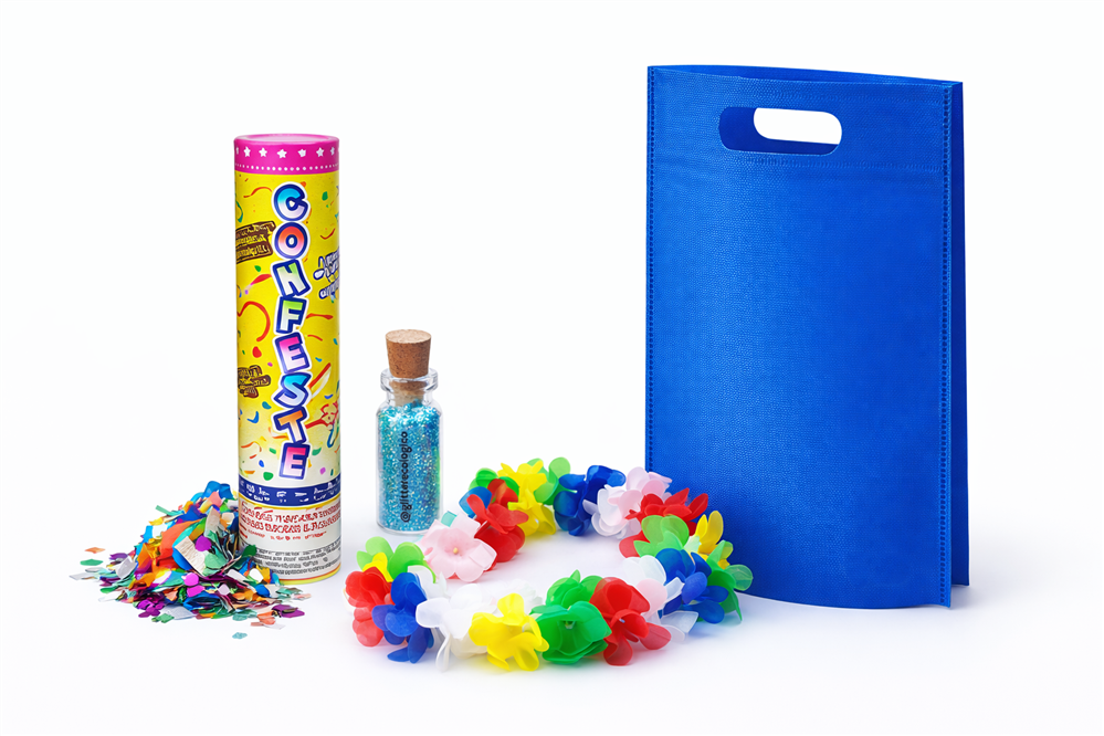 Com itens clássicos da folia, o kit estimula interação imediata, fotos, compartilhamentos e engajamento espontâneo. O estoura confete cria o momento de impacto, o glitter biodegradável garante brilho com consciência ambiental, e o colar havaiano completa o clima festivo. A embalagem em TNT facilita a distribuição e agrega organização ao kit.