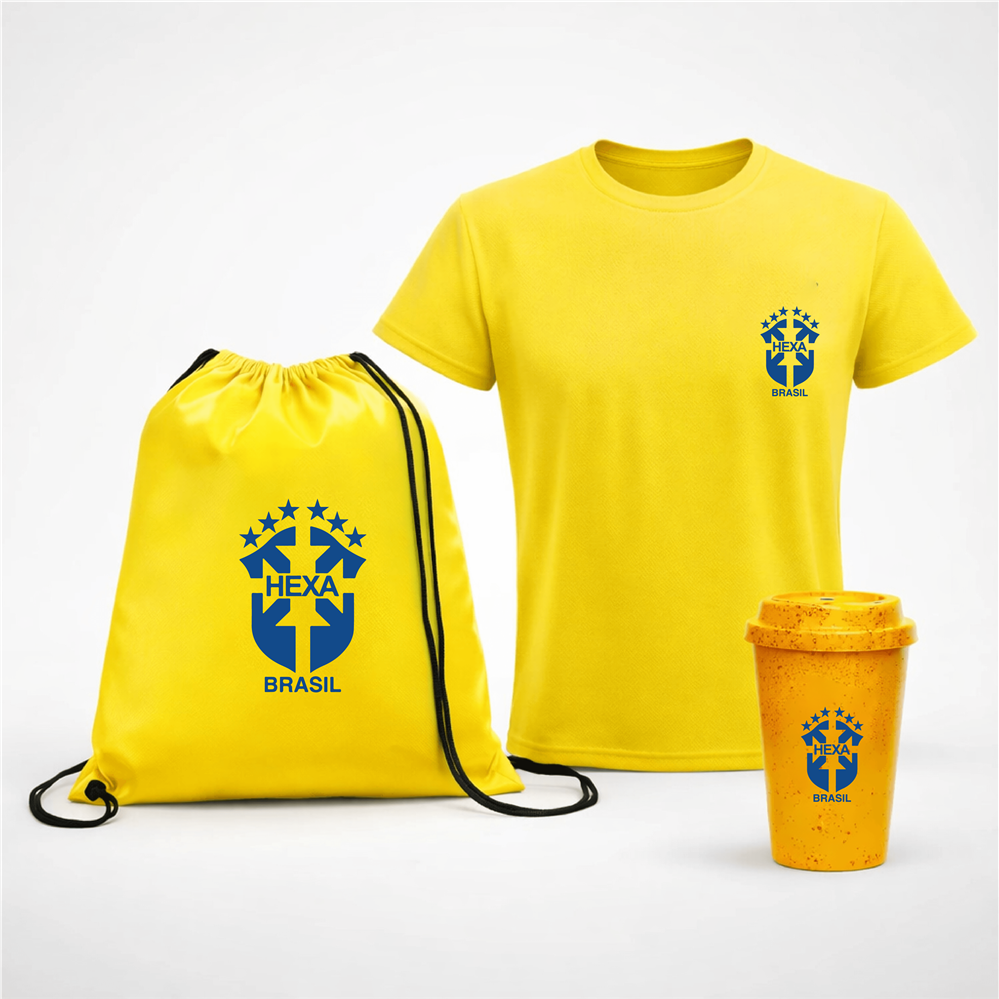 Com itens que unem conforto, praticidade e visibilidade de marca, o kit é perfeito para ações de endomarketing, eventos corporativos, campanhas promocionais e ativações internas. A camiseta de algodão promove pertencimento e clima de torcida, a sacochila em TNT facilita o uso em eventos e deslocamentos, e o copo Cancun Green Colors reforça uma mensagem atual de sustentabilidade e uso consciente.