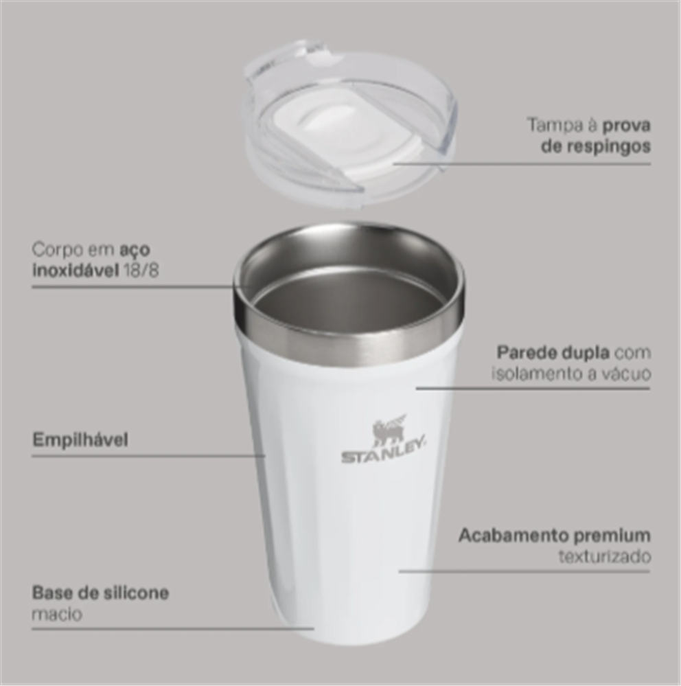 Celebrando os designs dos copos icônicos de cerveja, os copos térmicos Beer Tumbler combinam o acabamento sofisticado e o design ergonômico com a eficiência térmica ideal para os seus momentos de celebração. Se você ama os copos clássicos de cerveja, vai amar essa novidade da linha Bar Stanley. Afinal, happy hour não tem hora, tem Stanley. Um brinde ao novo!