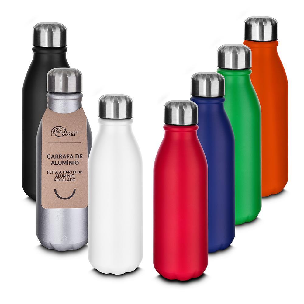 Fabricada em alumínio reciclado, a garrafa é leve, resistente e reutilizável, sendo uma excelente alternativa para reduzir o uso de recipientes descartáveis.