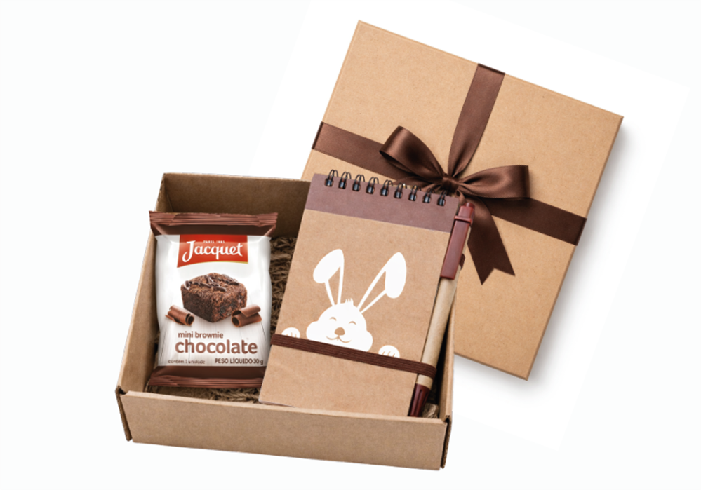 O Kit Páscoa Corporativo Sustentável com Mini Brownie de Chocolate é a escolha ideal para empresas que desejam presentear com significado, equilíbrio e responsabilidade ambiental.