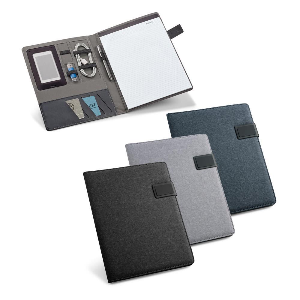 Com acabamento sofisticado em linho sintético e fechamento magnético, ela entrega uma experiência premium logo no primeiro contato. É o equilíbrio perfeito entre elegância, funcionalidade e presença de marca.