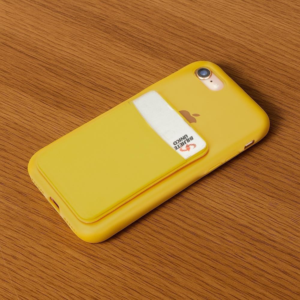 Produzido em lycra elástica, o bolso adesivo permite armazenar cartões de forma segura e prática diretamente na parte traseira do smartphone.