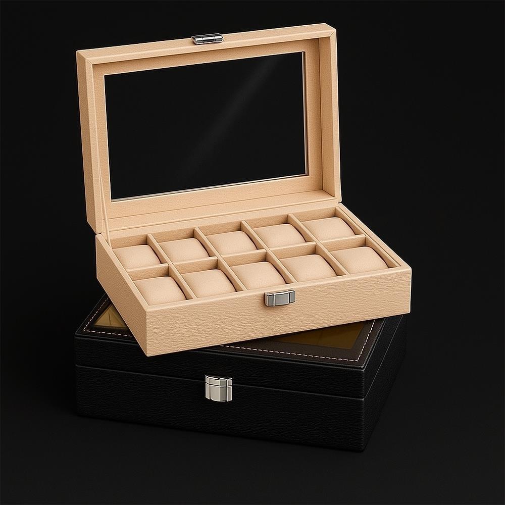 O Porta-Relógios Personalizado para 10 Relógios com Visor de Vidro e Acabamento Texturizado é um brinde corporativo sofisticado, ideal para empresas que desejam presentear clientes, executivos ou parceiros com um item elegante e de alto valor percebido.