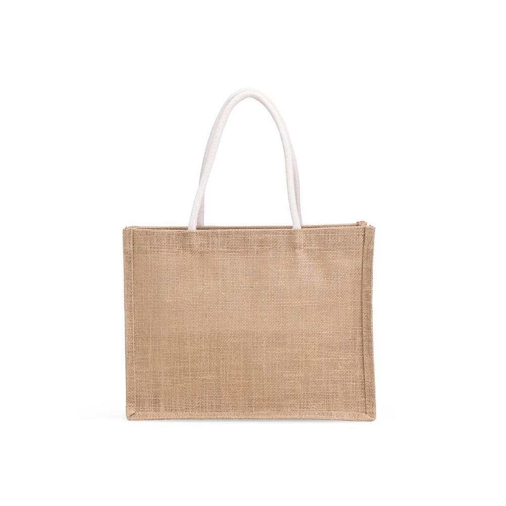 Produzida em juta natural com gramatura de 400g/m², oferece alta resistência, durabilidade e acabamento sofisticado, sendo ideal para transportar itens com segurança e estilo. Seu design funcional e elegante permite múltiplos usos: desde compras do dia a dia até momentos de lazer como praia, viagens rápidas ou eventos corporativos.